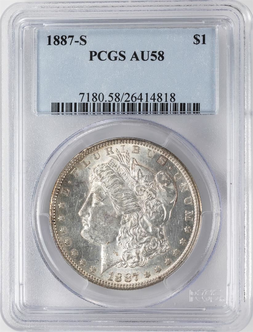 One 1887-S $1 Morgan Silver Dollar Coin PCGS AU58. PCGS Graded.