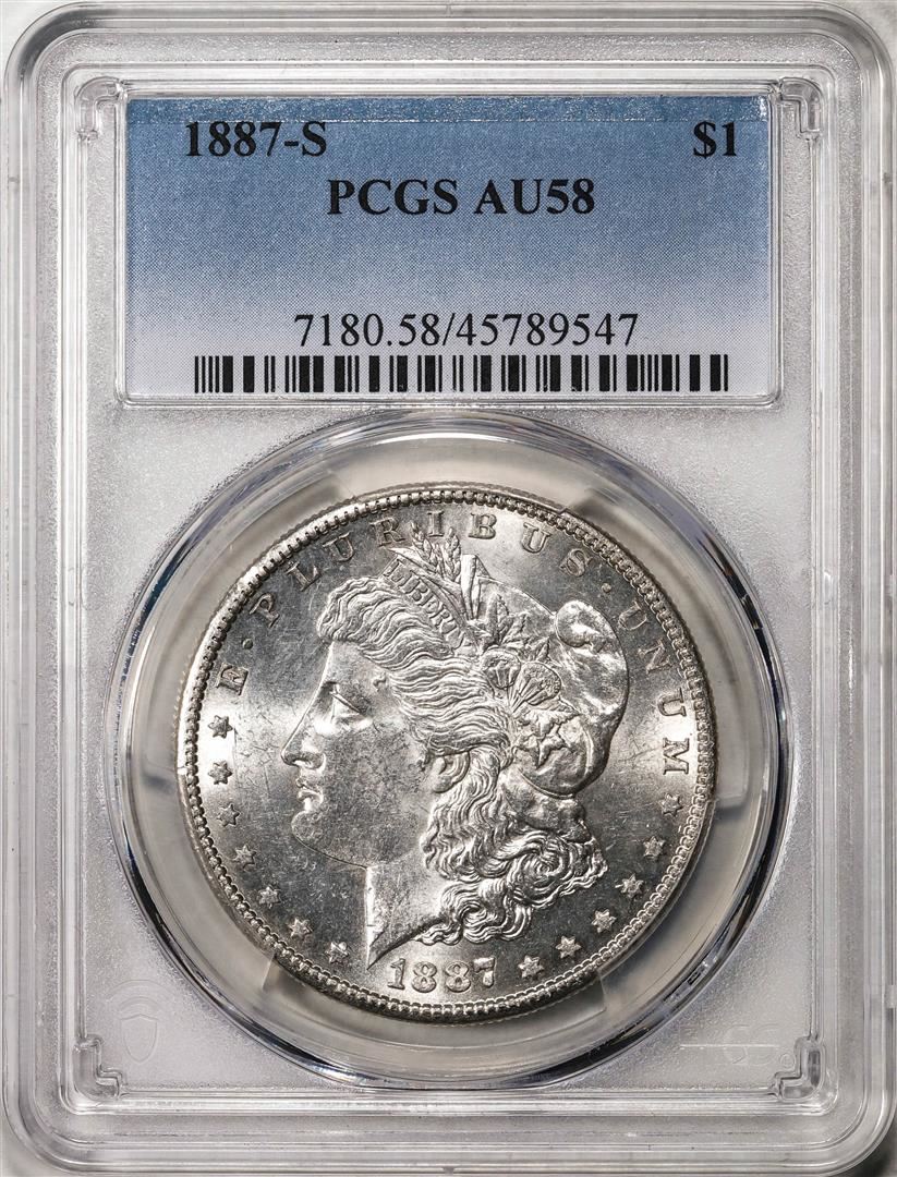 One 1887-S $1 Morgan Silver Dollar Coin PCGS AU58. PCGS Graded.