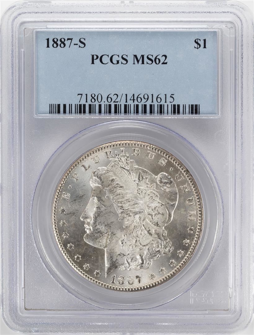 One 1887-S $1 Morgan Silver Dollar Coin PCGS MS62. PCGS Graded.