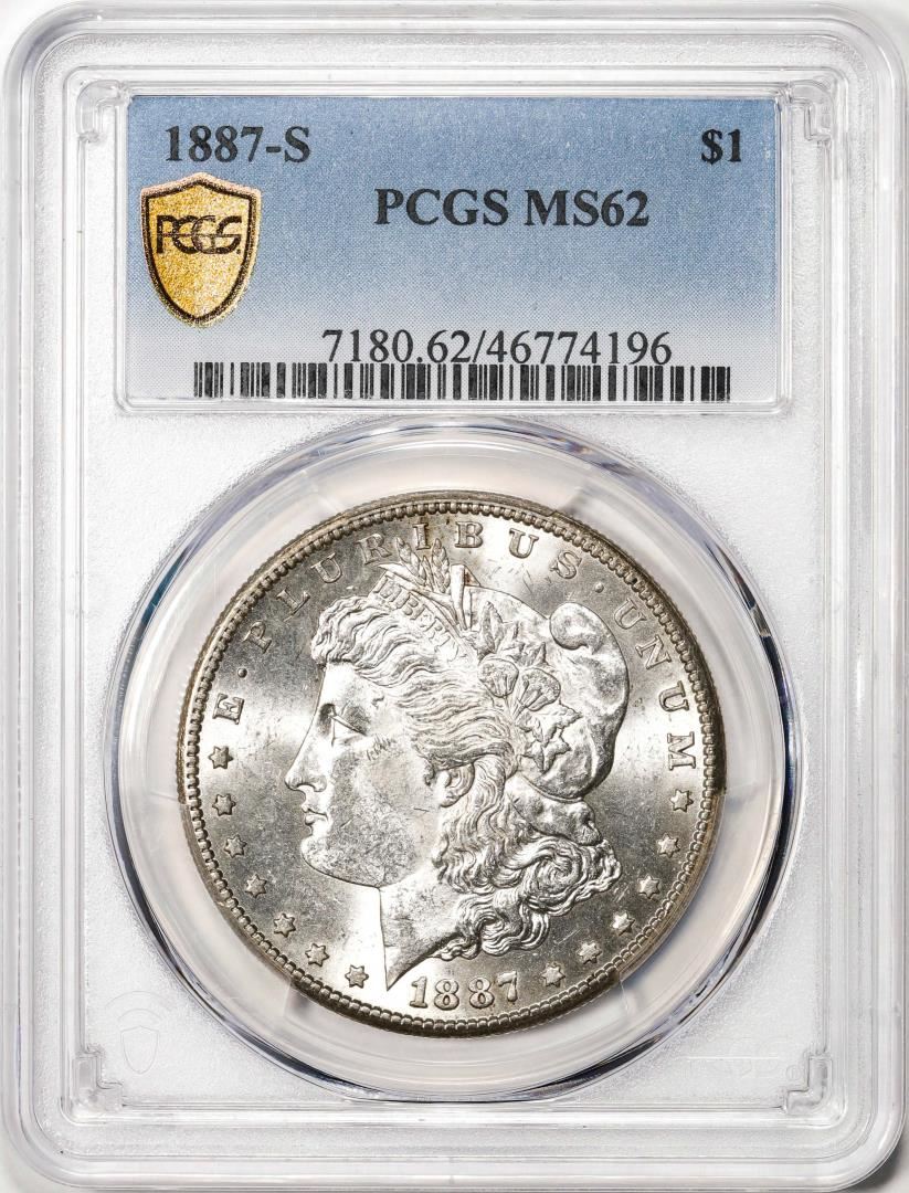 One 1887-S $1 Morgan Silver Dollar Coin PCGS MS62. PCGS Graded.