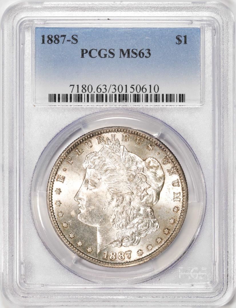 One 1887-S $1 Morgan Silver Dollar Coin PCGS MS63. PCGS Graded.