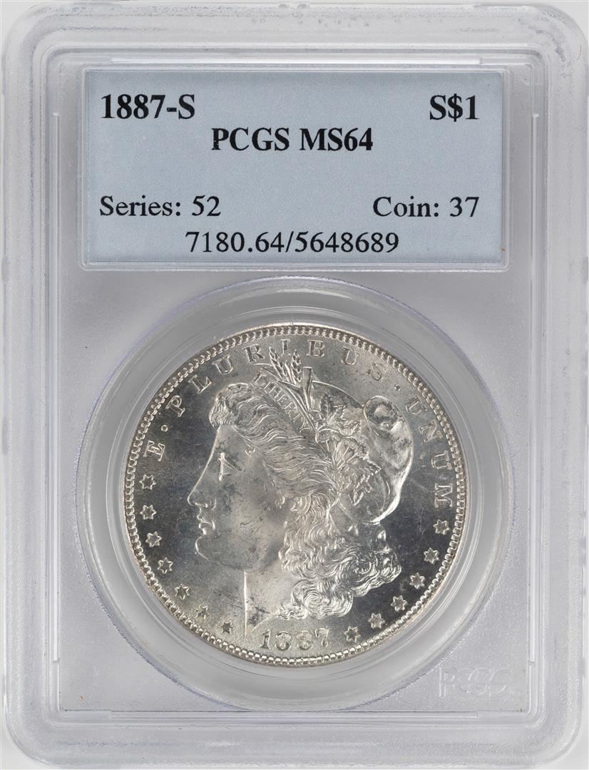 One 1887-S $1 Morgan Silver Dollar Coin PCGS MS64. PCGS Graded.