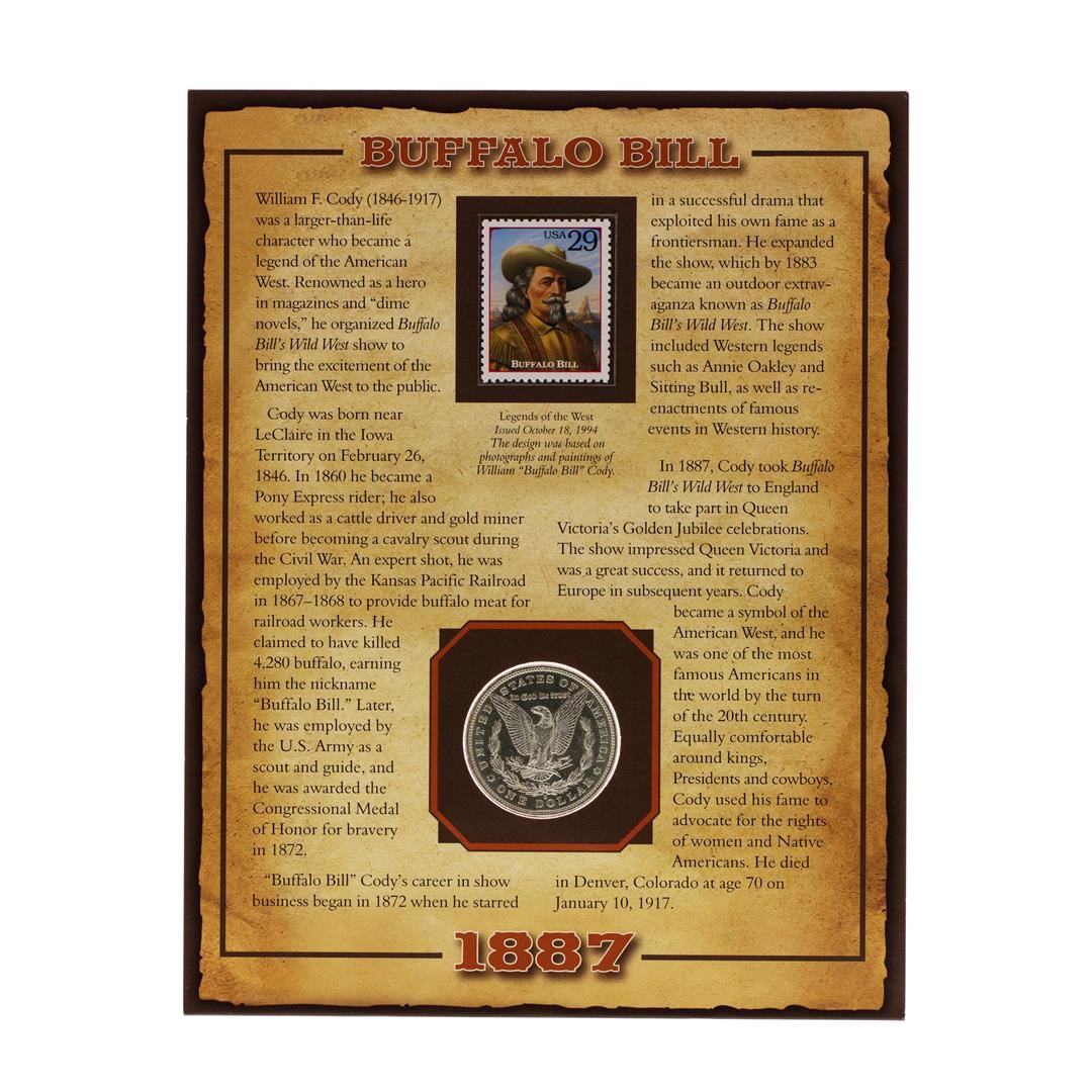 1887-S $1 Morgan Silver Dollar Coin with William "Buffalo Bill" Cody Stamp