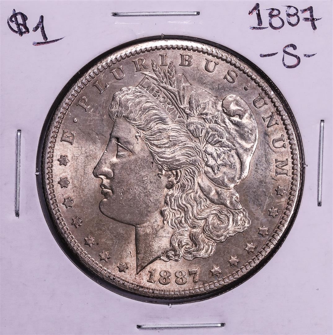 One 1887-S $1 Morgan Silver Dollar Coin.
