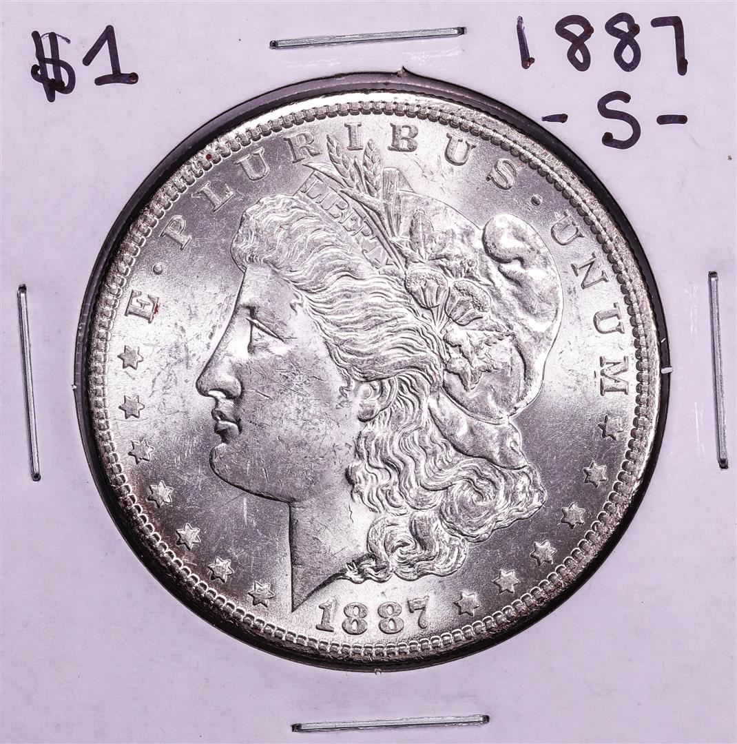 One 1887-S $1 Morgan Silver Dollar Coin.
