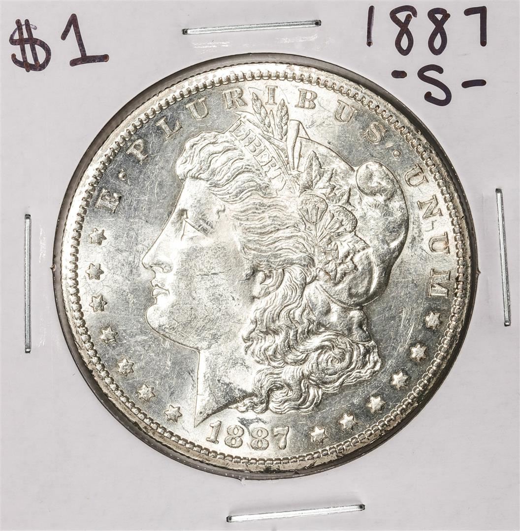 One 1887-S $1 Morgan Silver Dollar Coin.