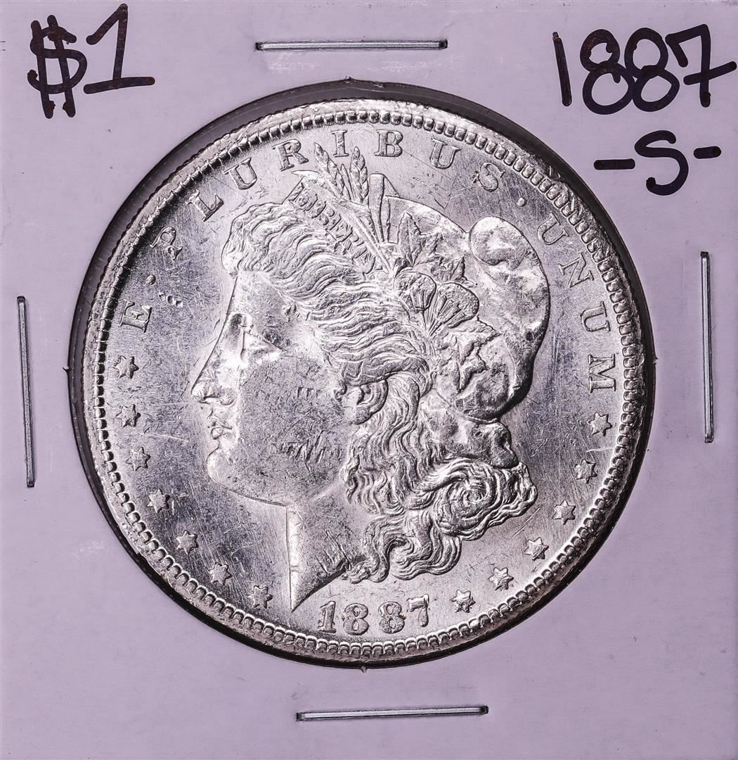 One 1887-S $1 Morgan Silver Dollar Coin.