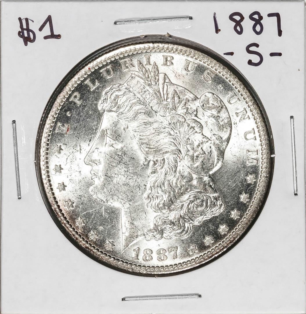 One 1887-S $1 Morgan Silver Dollar Coin.