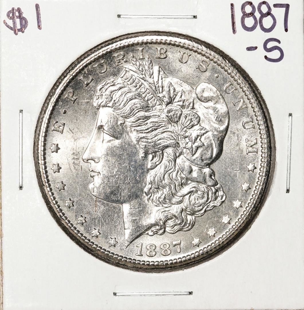 One 1887-S $1 Morgan Silver Dollar Coin.