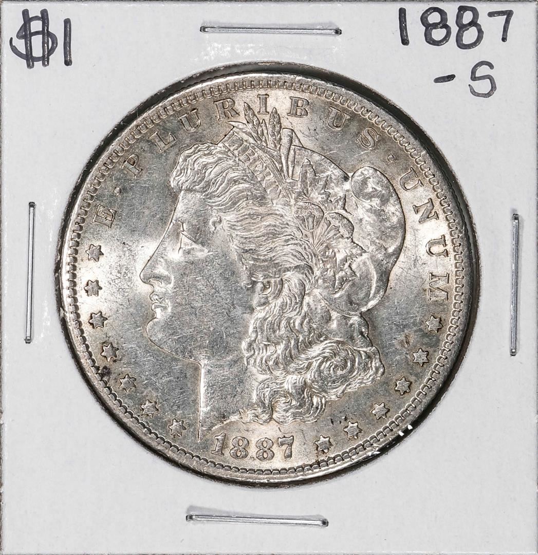 One 1887-S $1 Morgan Silver Dollar Coin.