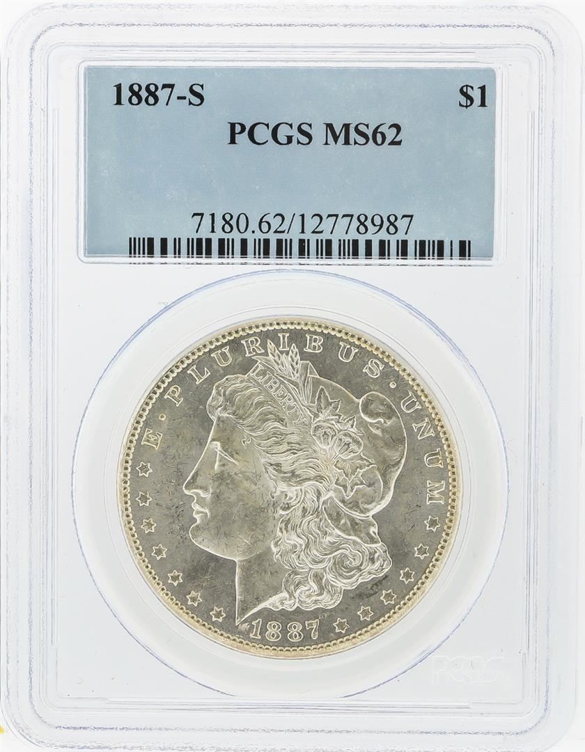One 1887-S $1 Morgan Silver Dollar PCGS Graded MS62. PCGS Graded.
