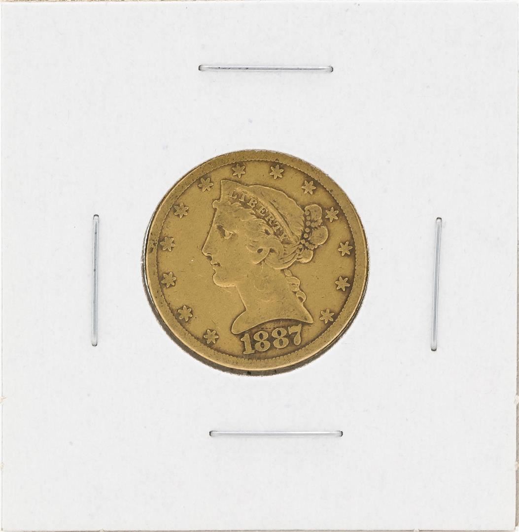 One 1887-S $5 Liberty Head Half Eagle Gold Coin.