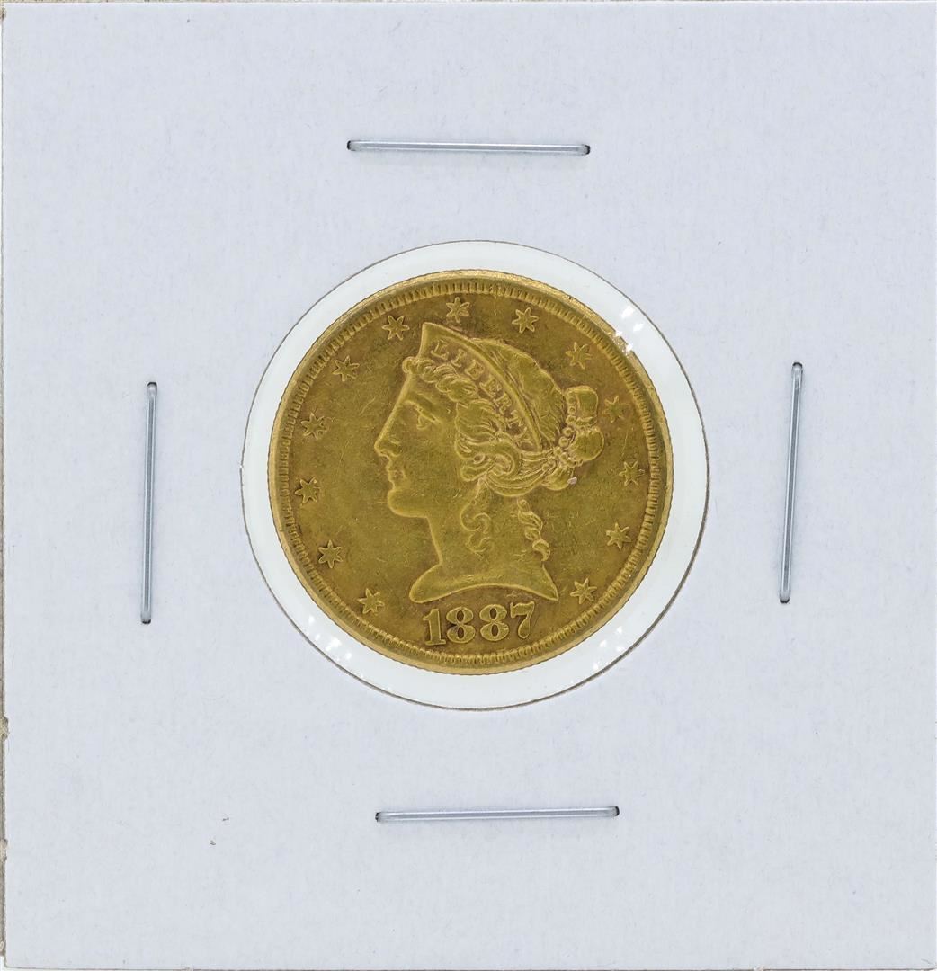 One 1887-S $5 Liberty Head Half Eagle Gold Coin.