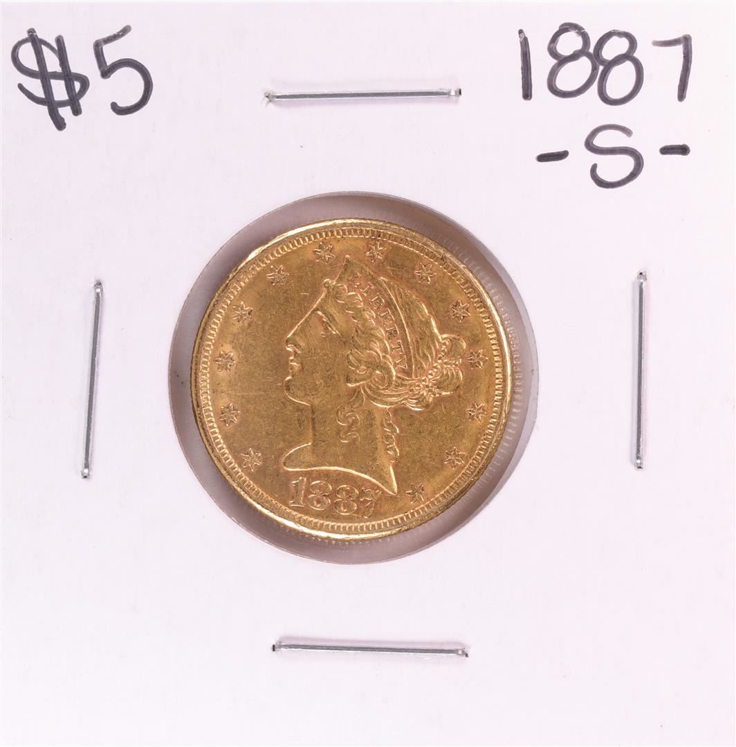 One 1887-S $5 Liberty Head Half Eagle Gold Coin.