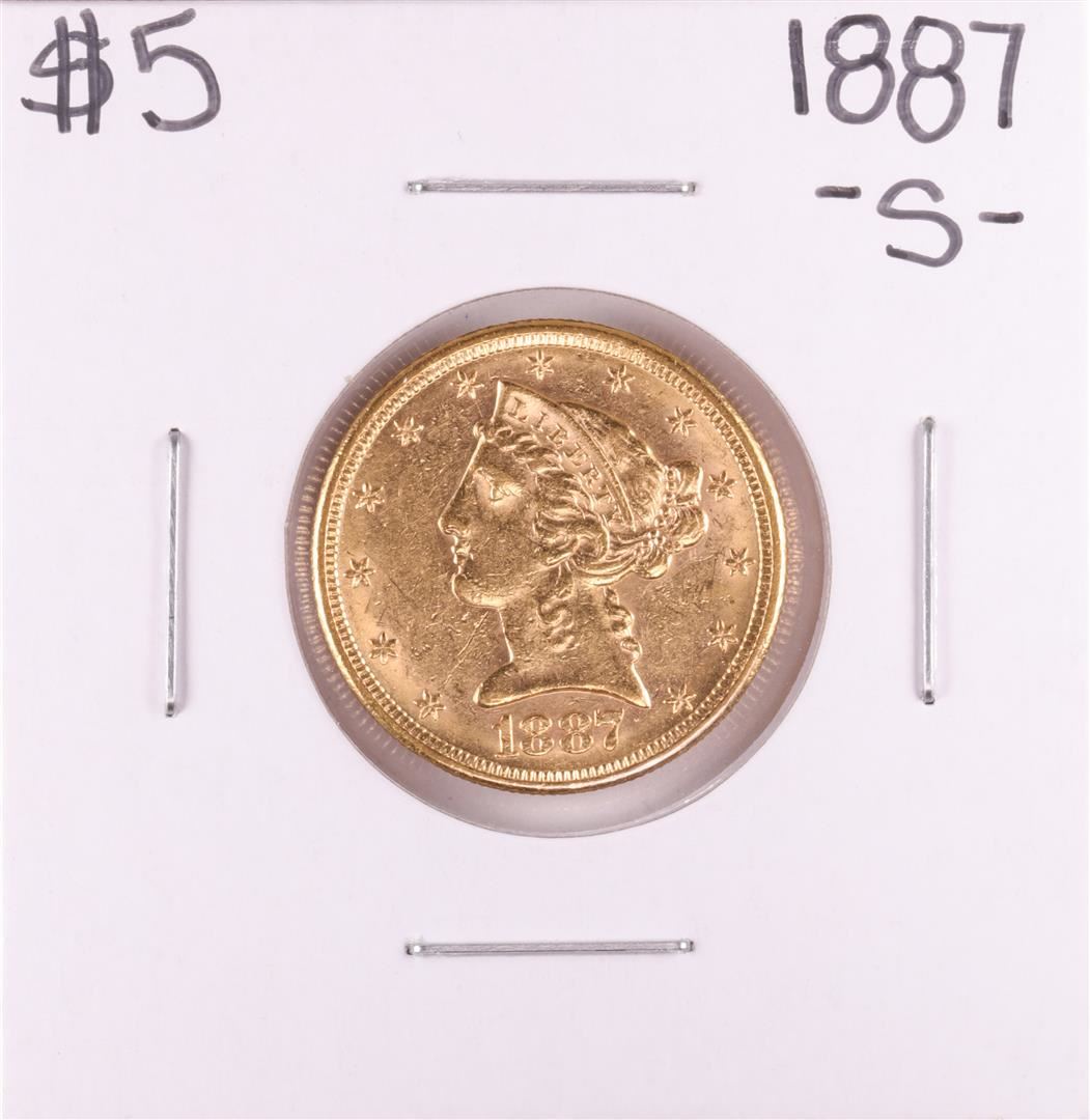 One 1887-S $5 Liberty Head Half Eagle Gold Coin.