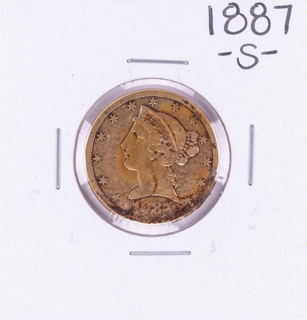 One 1887-S $5 Liberty Head Half Eagle Gold Coin.
