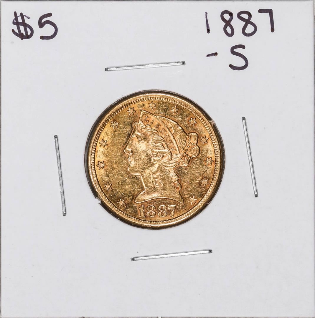 One 1887-S $5 Liberty Head Half Eagle Gold Coin.