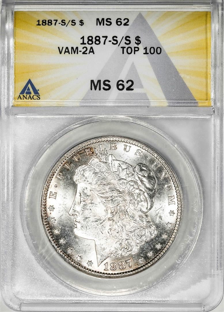 1887-S/S VAM-2A Top 100 $1 Morgan Silver Dollar Coin ANACS MS62