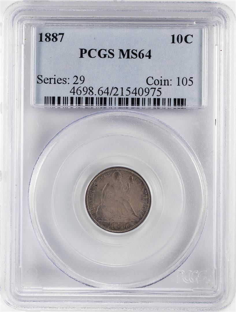 One 1887 Seated Liberty Dime Coin PCGS MS64. PCGS Graded.