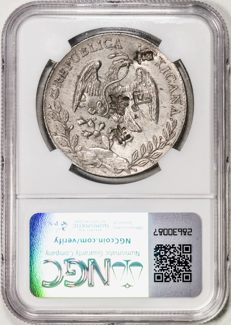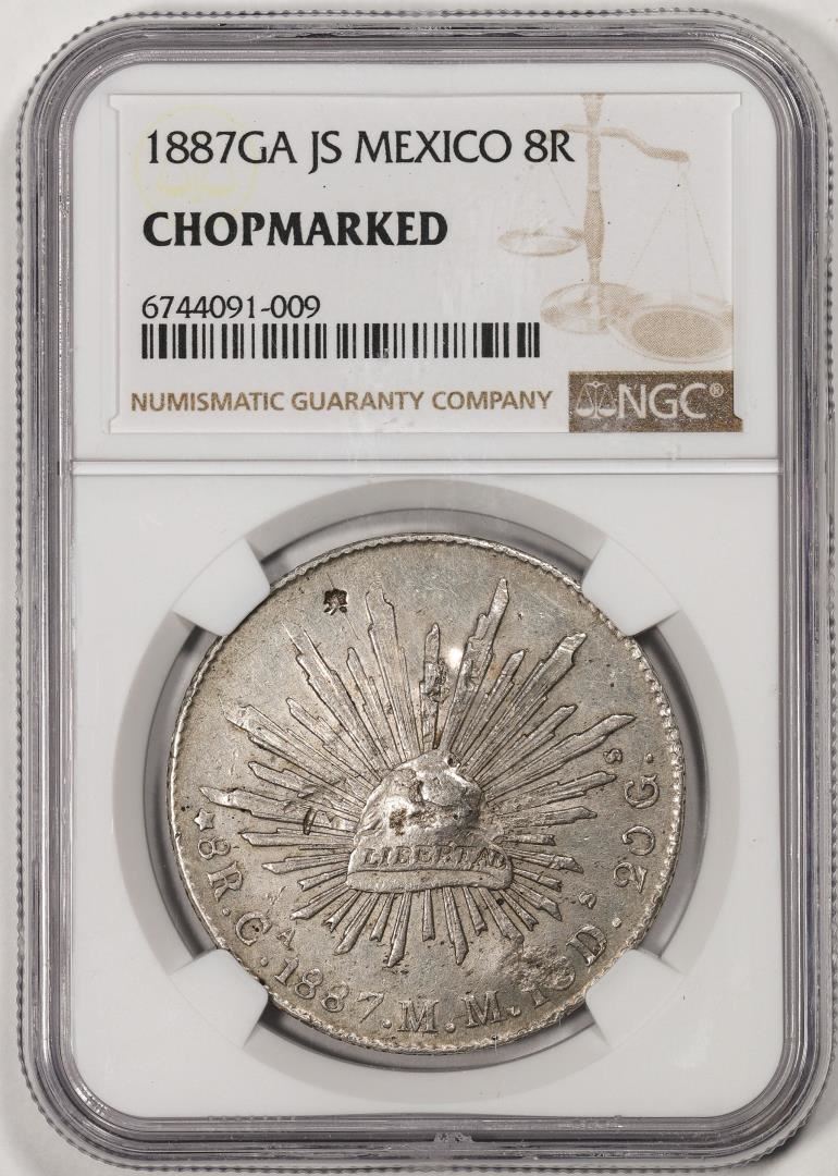One 1887GA JS Mexico 8 Reales Silver Coin NGC Chopmarked. NGC Certified.