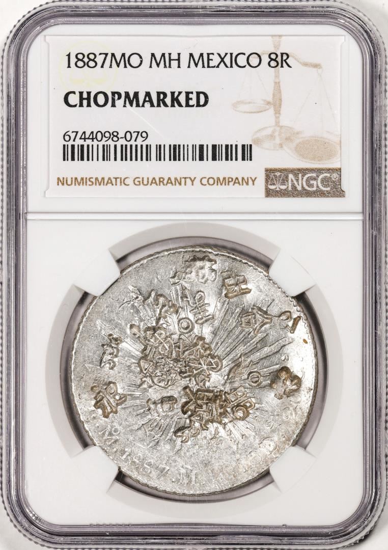 One 1887MO MH Mexico 8 Reales Silver Coin NGC Chopmarked. NGC Certified.