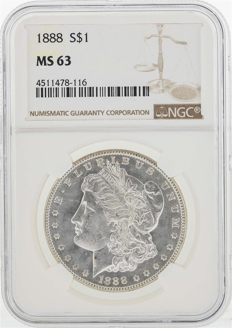 One 1888 $1 Morgan Silver Dollar Coin NGC MS63. NGC Certified.