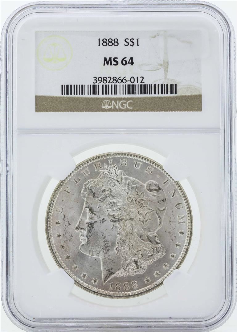 One 1888 $1 Morgan Silver Dollar Coin NGC MS64. NGC Certified.