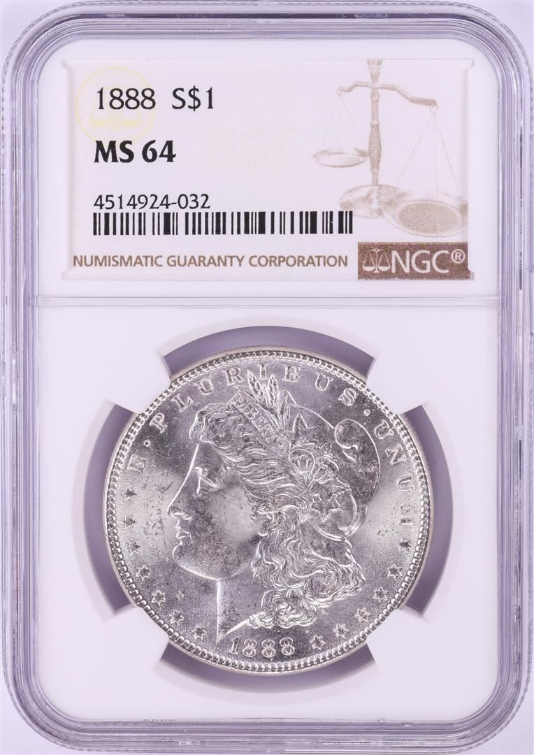 One 1888 $1 Morgan Silver Dollar Coin NGC MS64. NGC Certified.