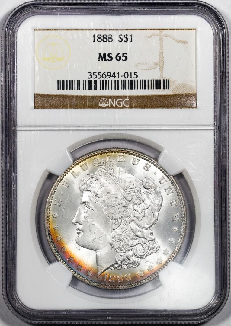 One 1888 $1 Morgan Silver Dollar Coin NGC MS65 Amazing Toning.