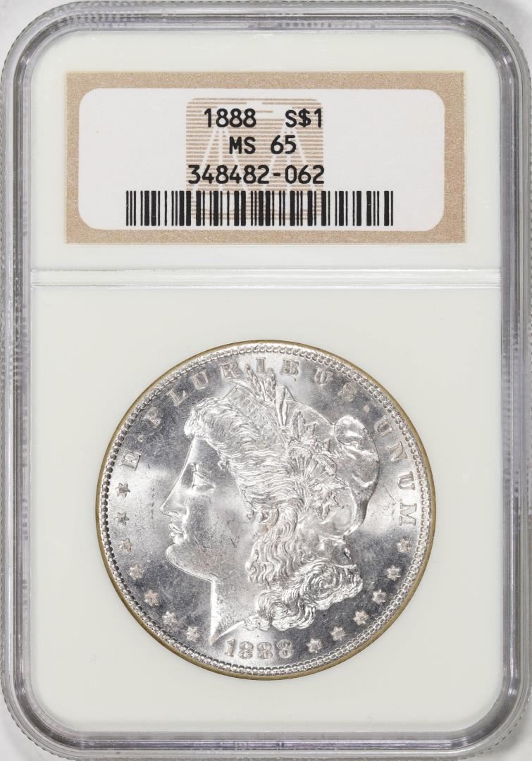 One 1888 $1 Morgan Silver Dollar Coin NGC MS65. NGC Certified.
