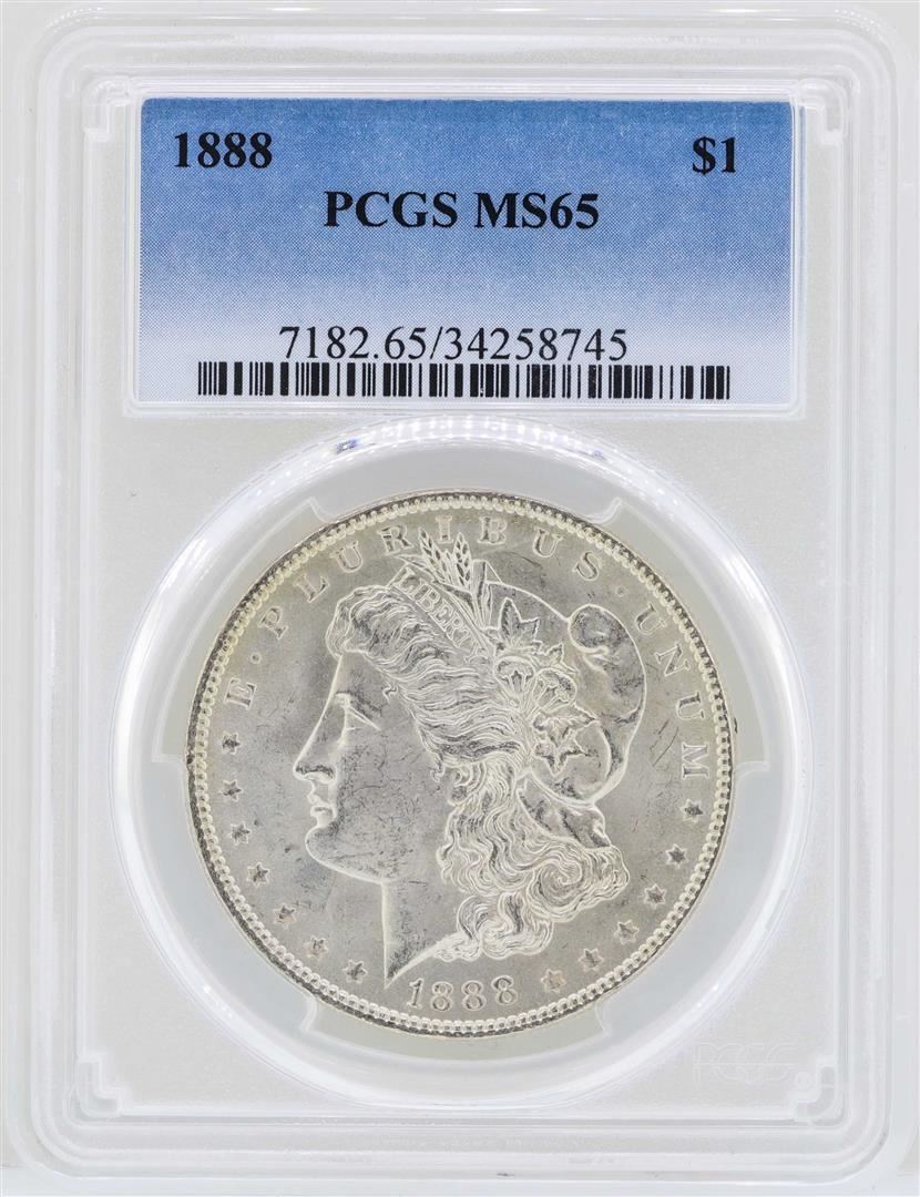 One 1888 $1 Morgan Silver Dollar Coin PCGS MS65. PCGS Graded.