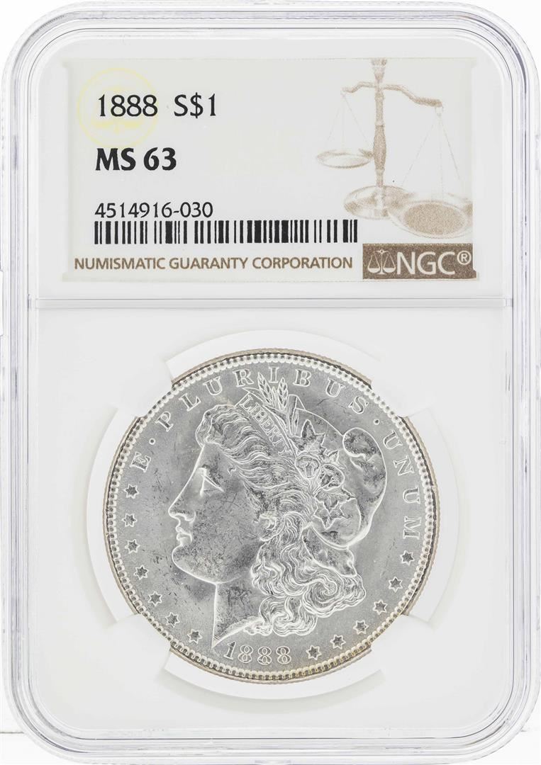 1888 $1 Morgan Silver Dollar Coin w/ Nice Toning NGC MS63