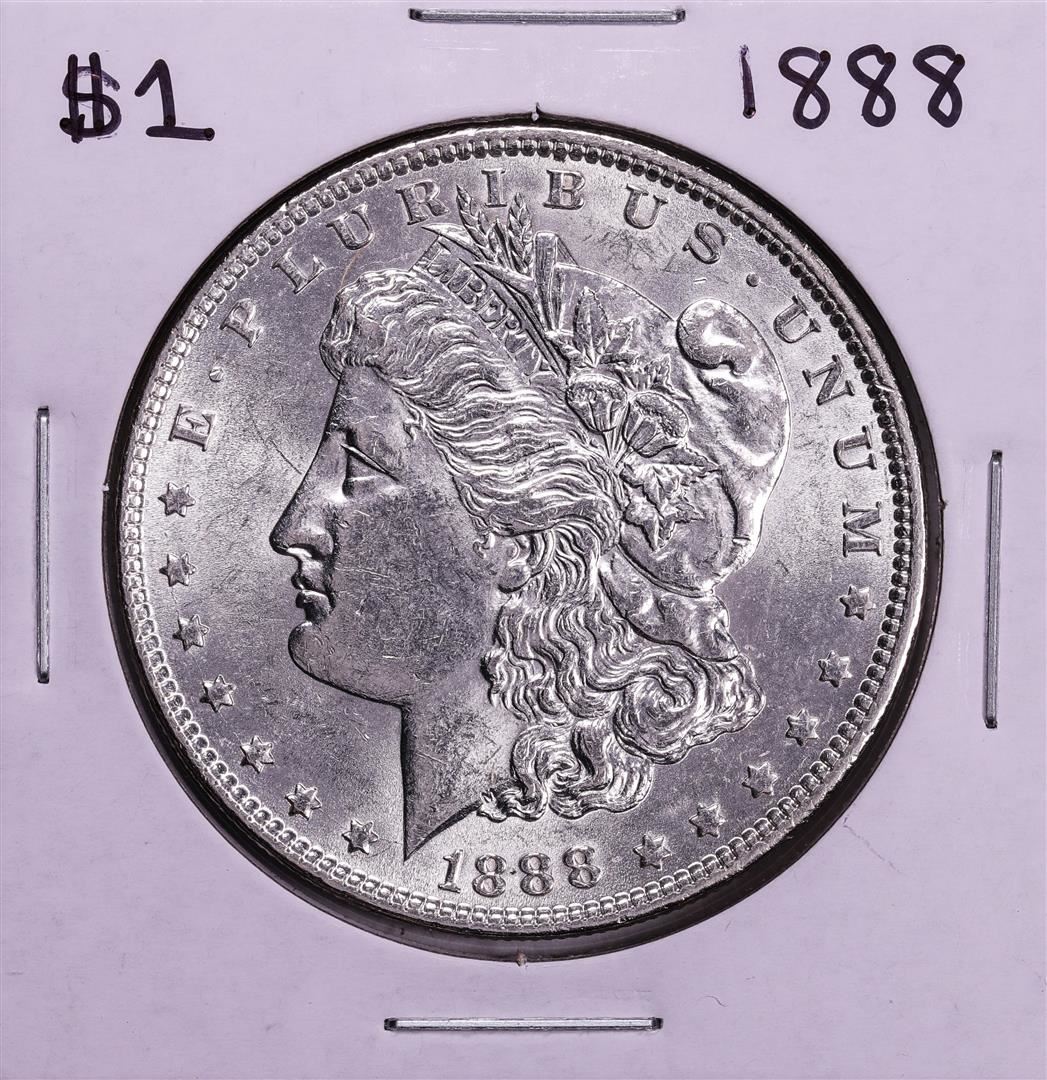 One 1888 $1 Morgan Silver Dollar Coin.