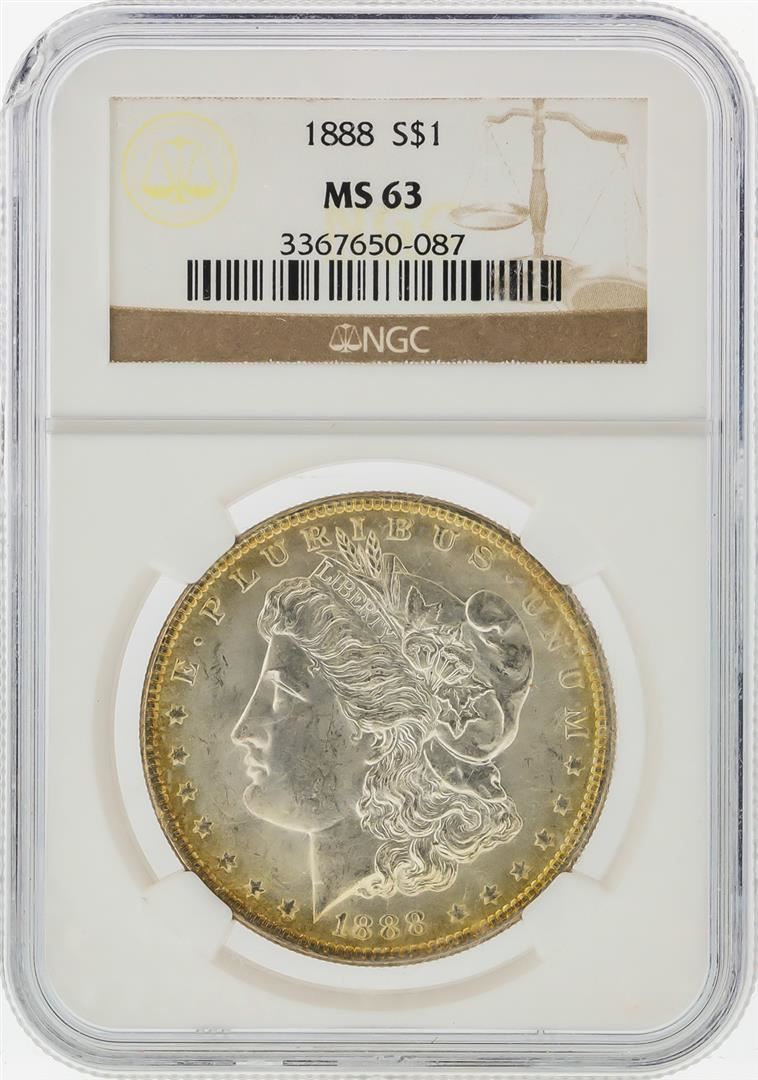 One 1888 $1 Morgan Silver Dollar NGC Graded MS63. NGC Certified.