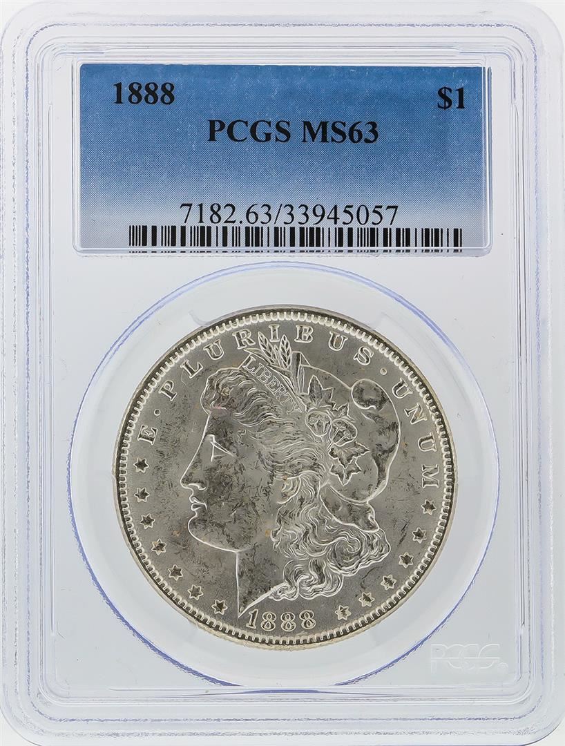 One 1888 $1 Morgan Silver Dollar PCGS Graded MS63. PCGS Graded.