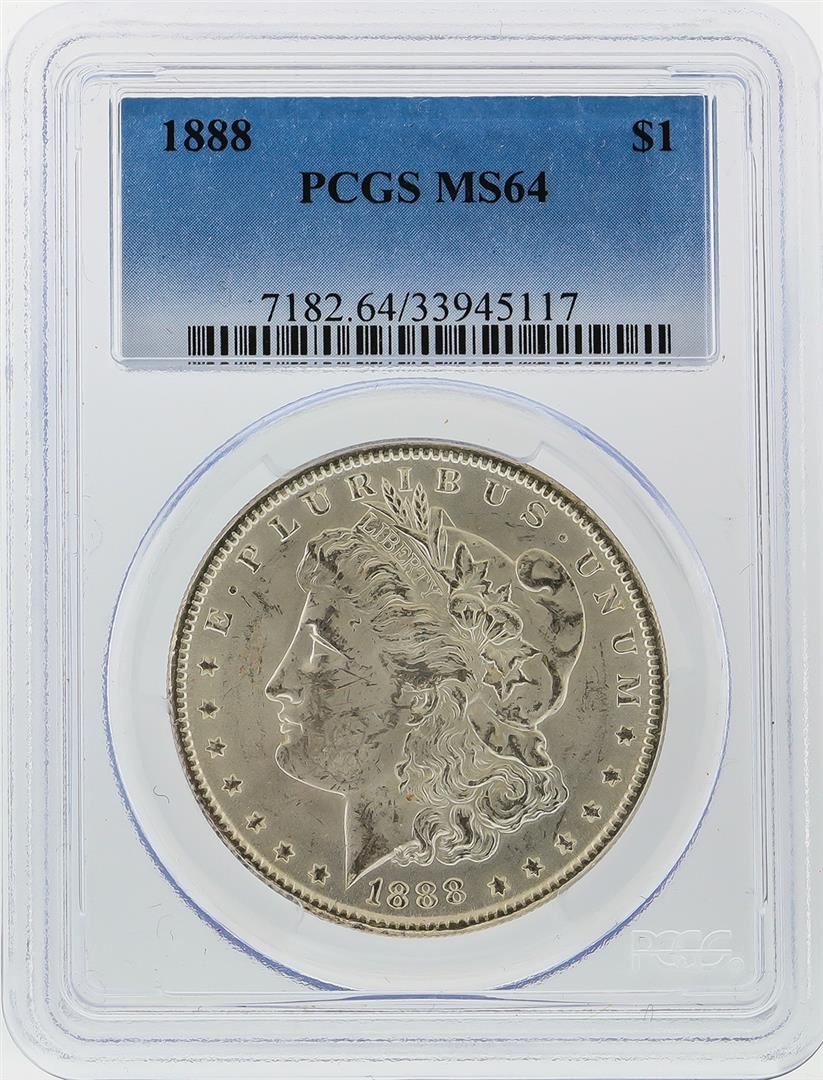 One 1888 $1 Morgan Silver Dollar PCGS Graded MS64. PCGS Graded.