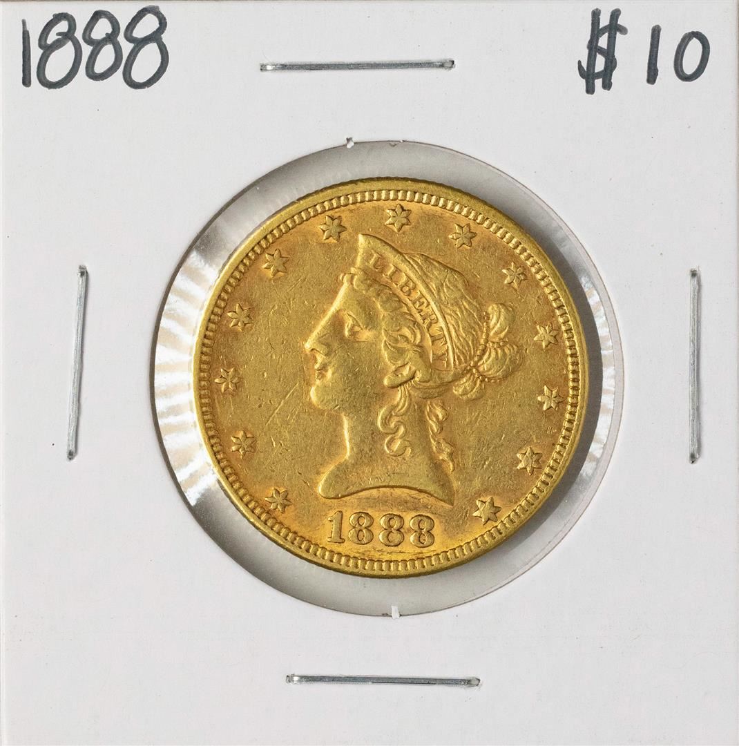 One 1888 $10 Liberty Head Eagle Gold Coin.