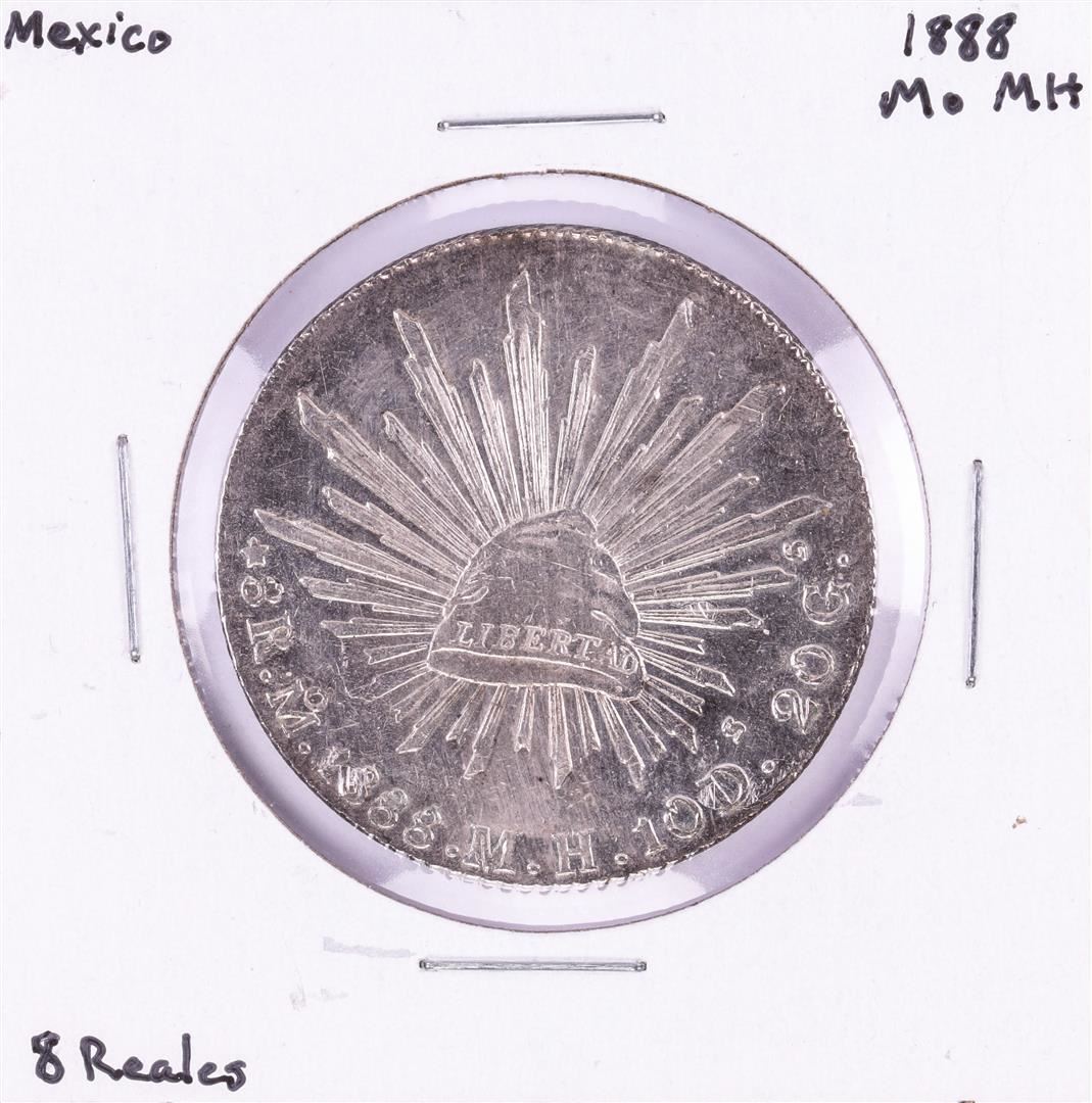 One 1888 MoMH Mexico 8 Reales Cap & Rays Silver Coin.