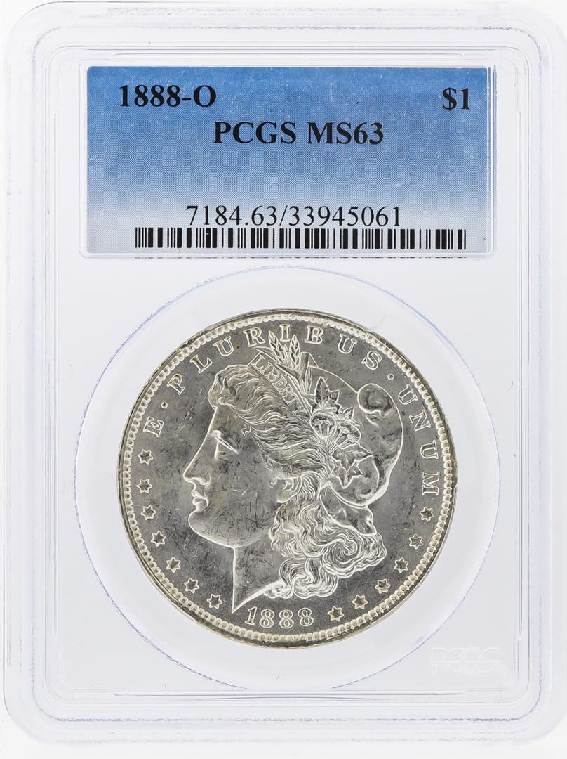 One 1888-O $1 Morgan Silver Dollar Coin NGC Graded MS63. NGC Certified.