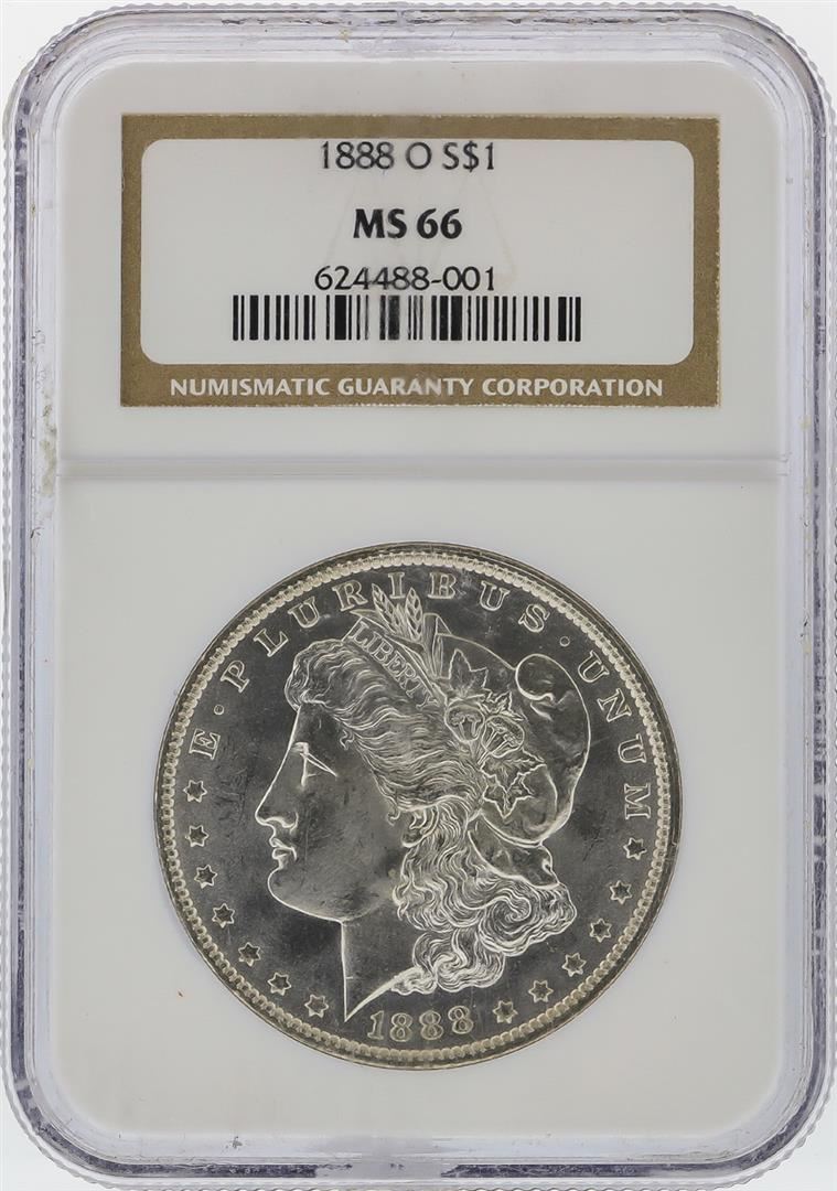 One 1888-O $1 Morgan Silver Dollar Coin NGC Graded MS66+. NGC Certified.