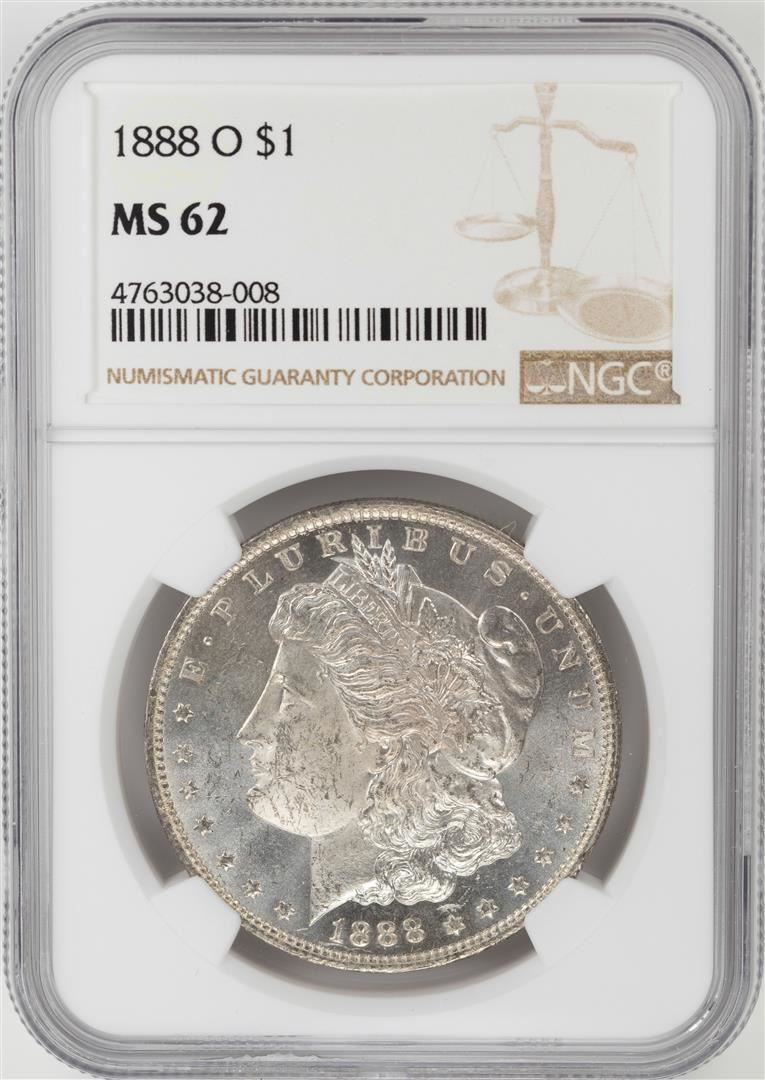 One 1888-O $1 Morgan Silver Dollar Coin NGC MS62. NGC Certified.