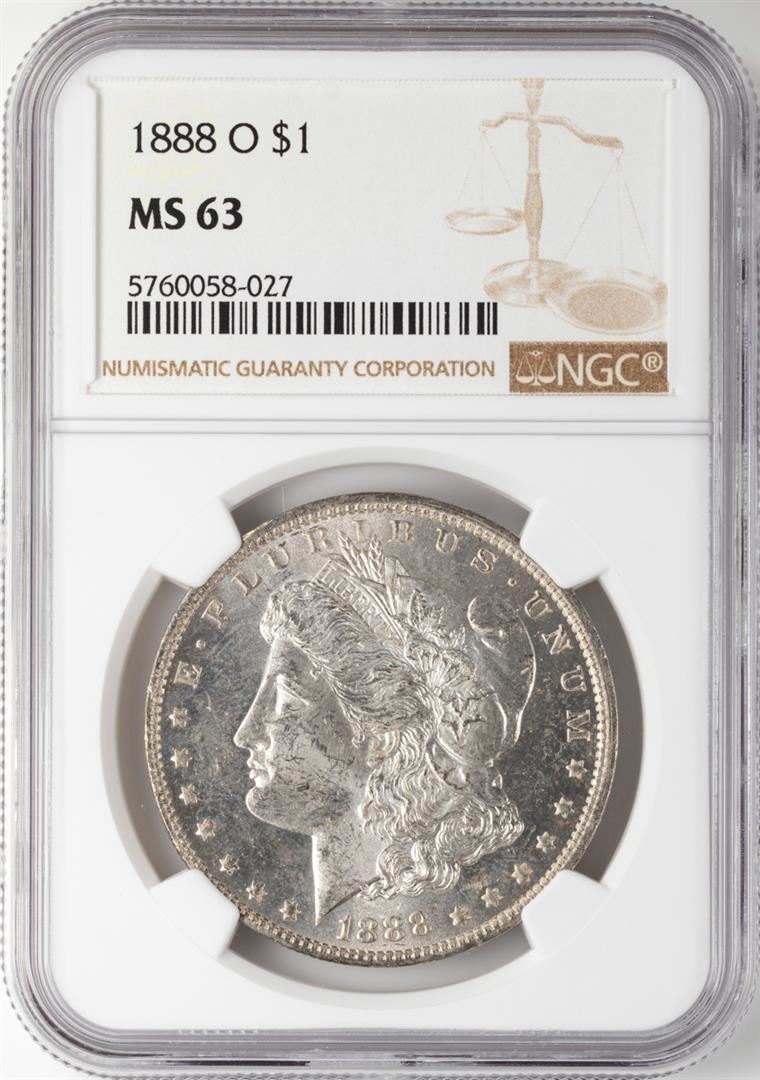 One 1888-O $1 Morgan Silver Dollar Coin NGC MS63. NGC Certified.