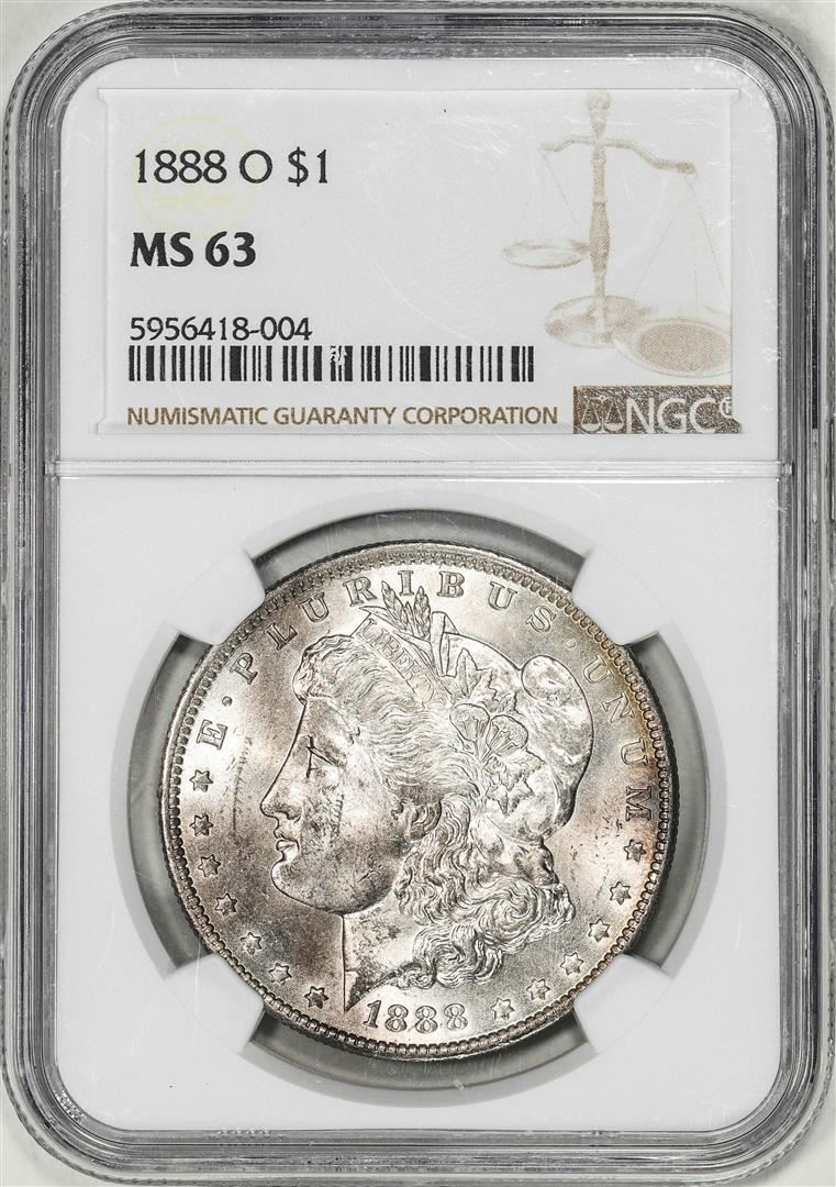 One 1888-O $1 Morgan Silver Dollar Coin NGC MS63. NGC Certified.