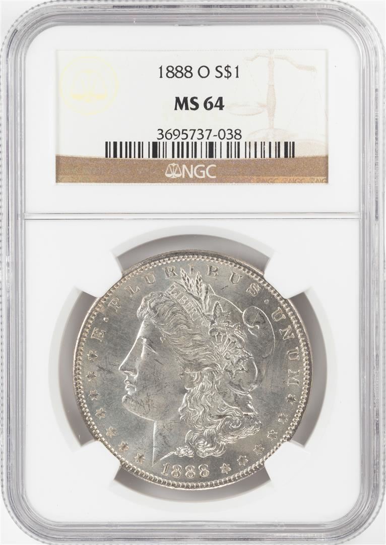 One 1888-O $1 Morgan Silver Dollar Coin NGC MS64. NGC Certified.