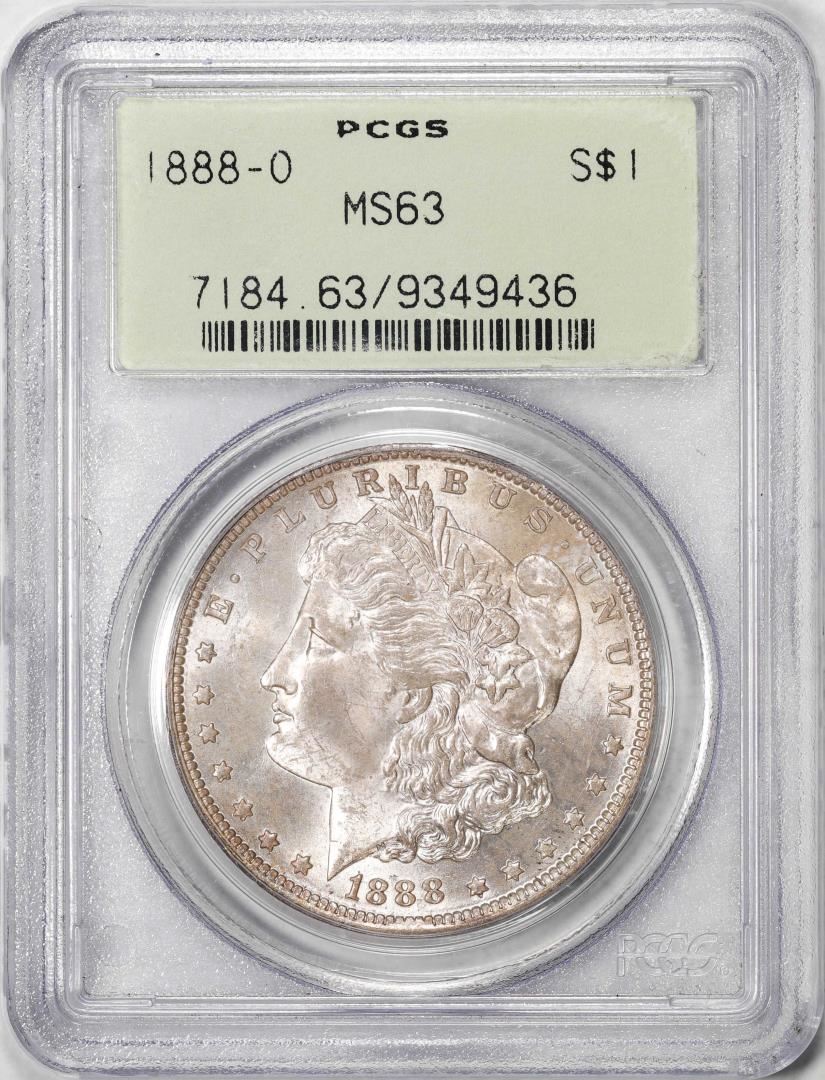 One 1888-O $1 Morgan Silver Dollar Coin PCGS MS63 Old Green Holder. PCGS Graded.