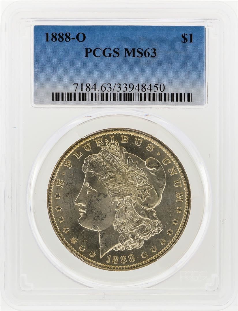 One 1888-O $1 Morgan Silver Dollar PCGS Graded MS63. PCGS Graded.