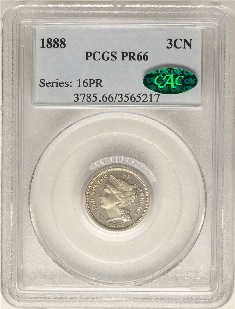 One 1888 Proof Three Cent Nickel Coin PCGS PR66 CAC. PCGS Graded.