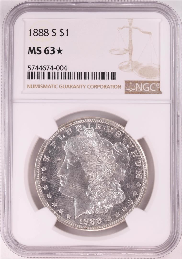 One 1888-S $1 Morgan Silver Dollar Coin NGC MS63* Star. NGC Certified.