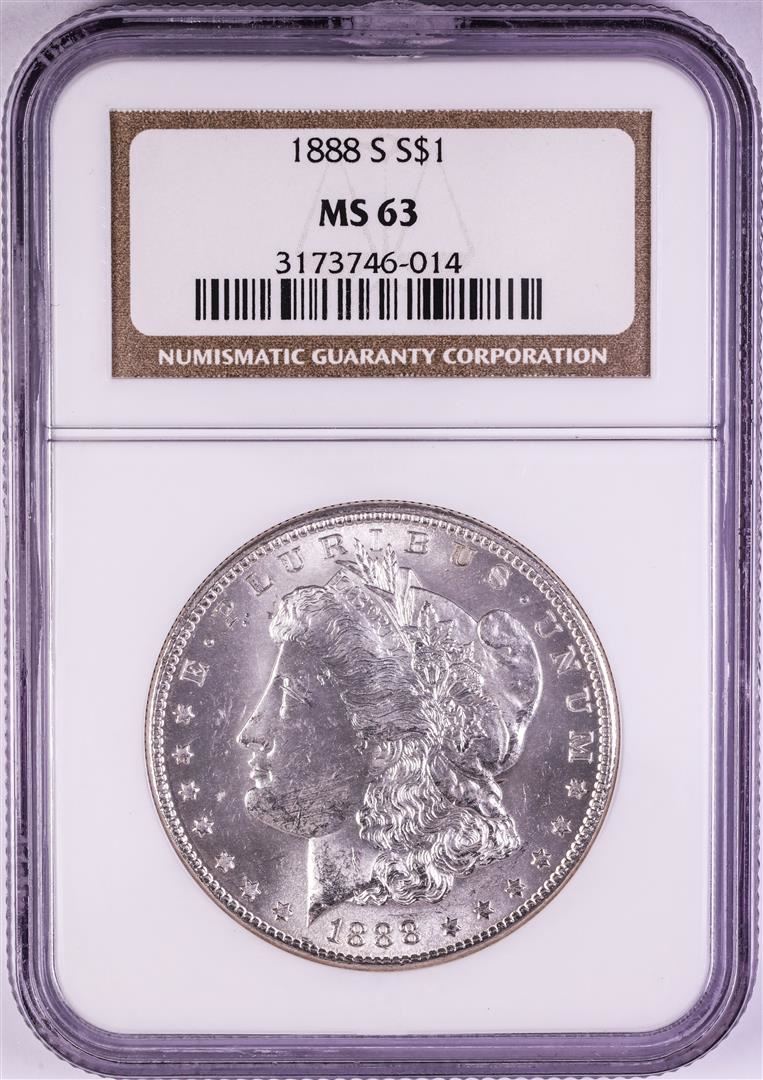 One 1888-S $1 Morgan Silver Dollar Coin NGC MS63. NGC Certified.