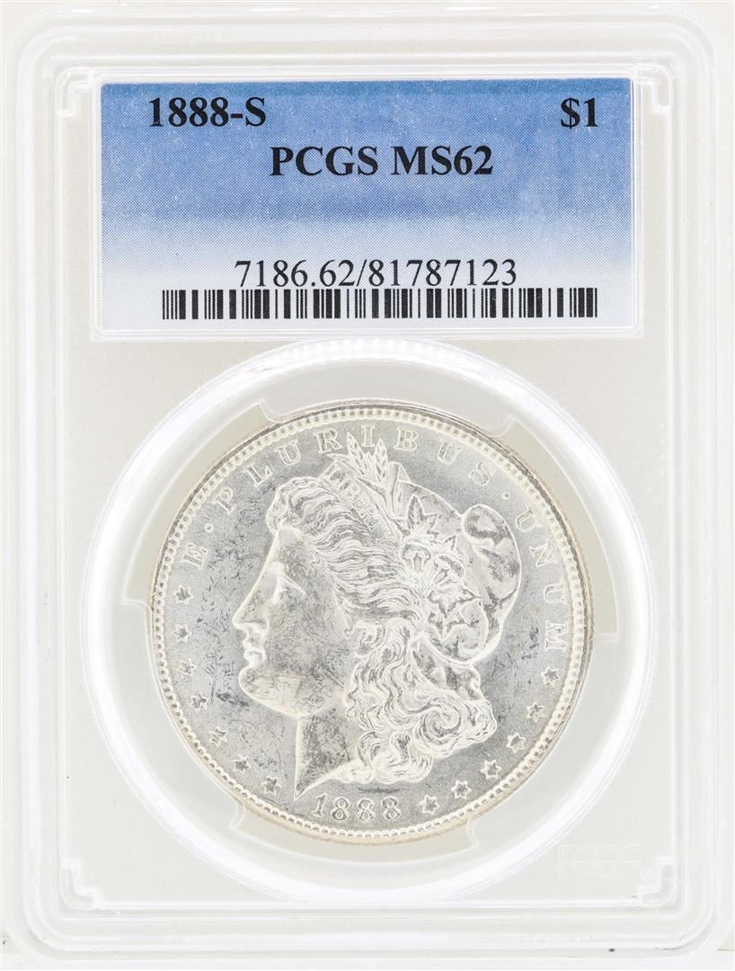 One 1888-S $1 Morgan Silver Dollar Coin PCGS MS62. PCGS Graded.